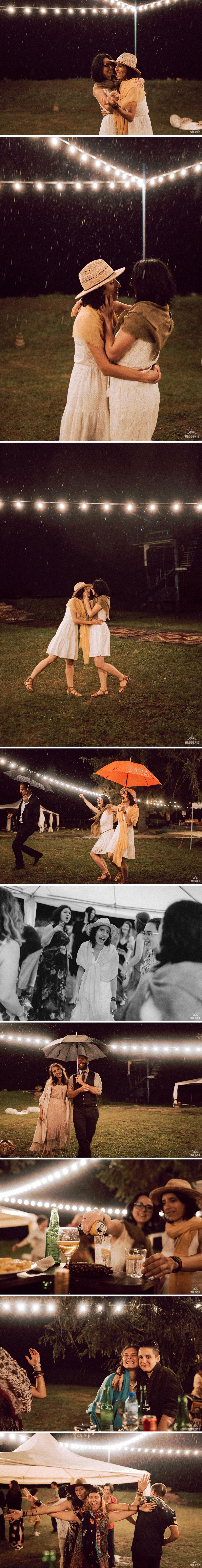 След общите снимки с гостите, дойде ред на първия брачен танц, който даде началото на един наистина як и емоционален купон. Въпреки дъждовното и ветровито време, настроението беше на максимум, а енергията – заразителна.
